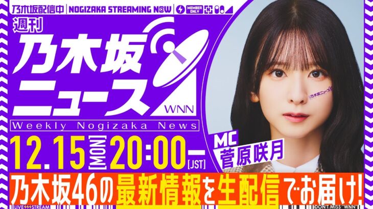 12月15日(月)の週刊乃木坂ニュースは生配信でお届け! 20:00~より配信開始予定です📡 乃木坂46の最新ニュースを一緒にチェックしましょう! 【週刊乃木坂ニュースとは?】 乃木坂46の最新情報をお届けするニュース番組です! 乃木坂46の副キャプテン・菅原咲月が番組のMCを務め、毎週月曜日の夜に生配信! 出演 乃木坂46 菅原咲月 ■メンバー個人企画再生リスト ■乃木坂工事中再 […]