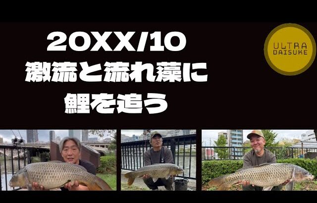 20XX年10月、激流と流れ藻に荒れる川に挑む人々