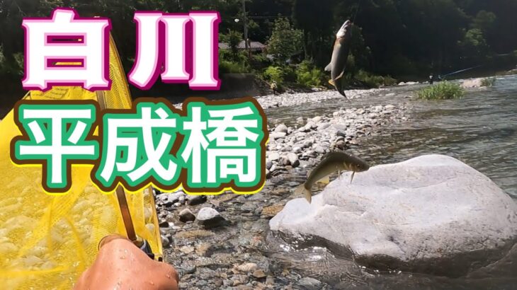 2025年7月 岐阜県白川 前日の雨でリセット 高水の引き水パターン X DAYとなるか? #シマノ #サンライン #鮎釣り #友釣り #車中泊